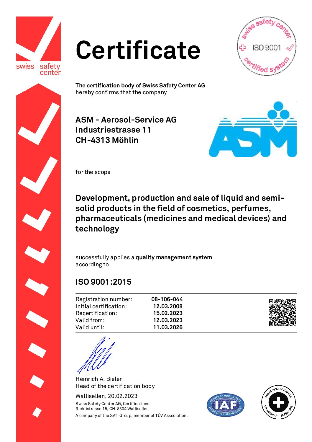 ASM travaille en suivant strictement les prescriptions des normes BPF, BPFc et ISO 9001 : 2015, ISO 13485 : 2016 et ISO 22716 : 2007. ASM peut également vous aider lors des enregistrements CE de vos produits médicaux. ASM a réalisé FDA Audit en Mai 2015 et réçue l’autorisation: enregistrement FDA (FEI No. 3005439256). Un deuxième audit a eu lieu en Septembre 2017.